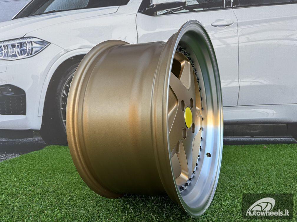 Ratlankis Ferrari 348 Style R17X8.5J 4X100 ET30 73.1 Gold with Diamond cut, Gold Tint and chrome rivets wheel