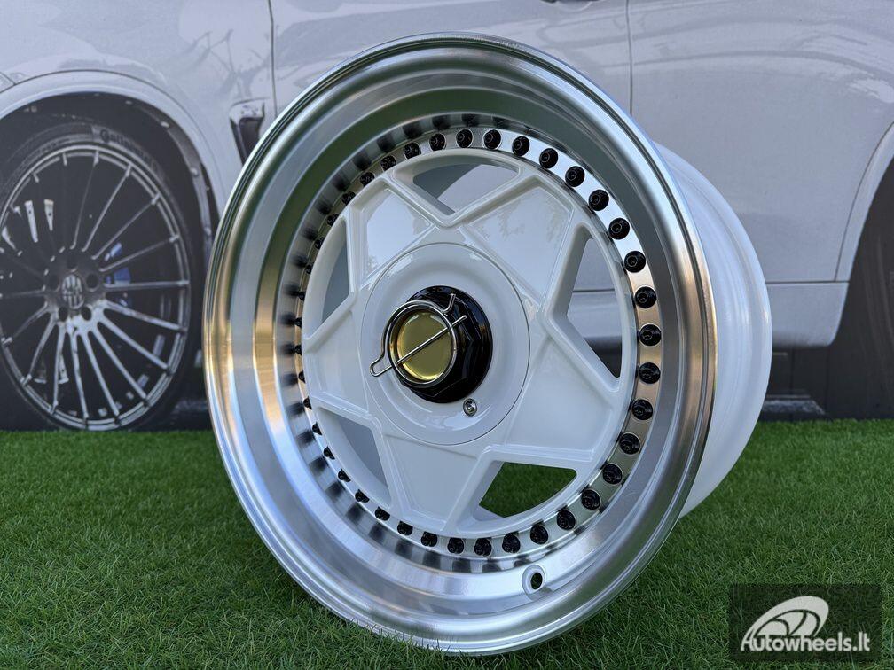 Ratlankis Ferrari Billet style 15X8.25J 4X100/4X114.3 ET20 73.1 White with Diamond cut lip and black rivets wheel