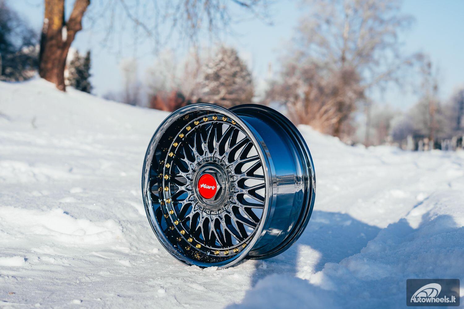 Ratlankis HART HR86 R17X8J 4X100/4X108 ET20 CB:73.1mm Hyper Black face and Diamond cut lip Gold Rivets
