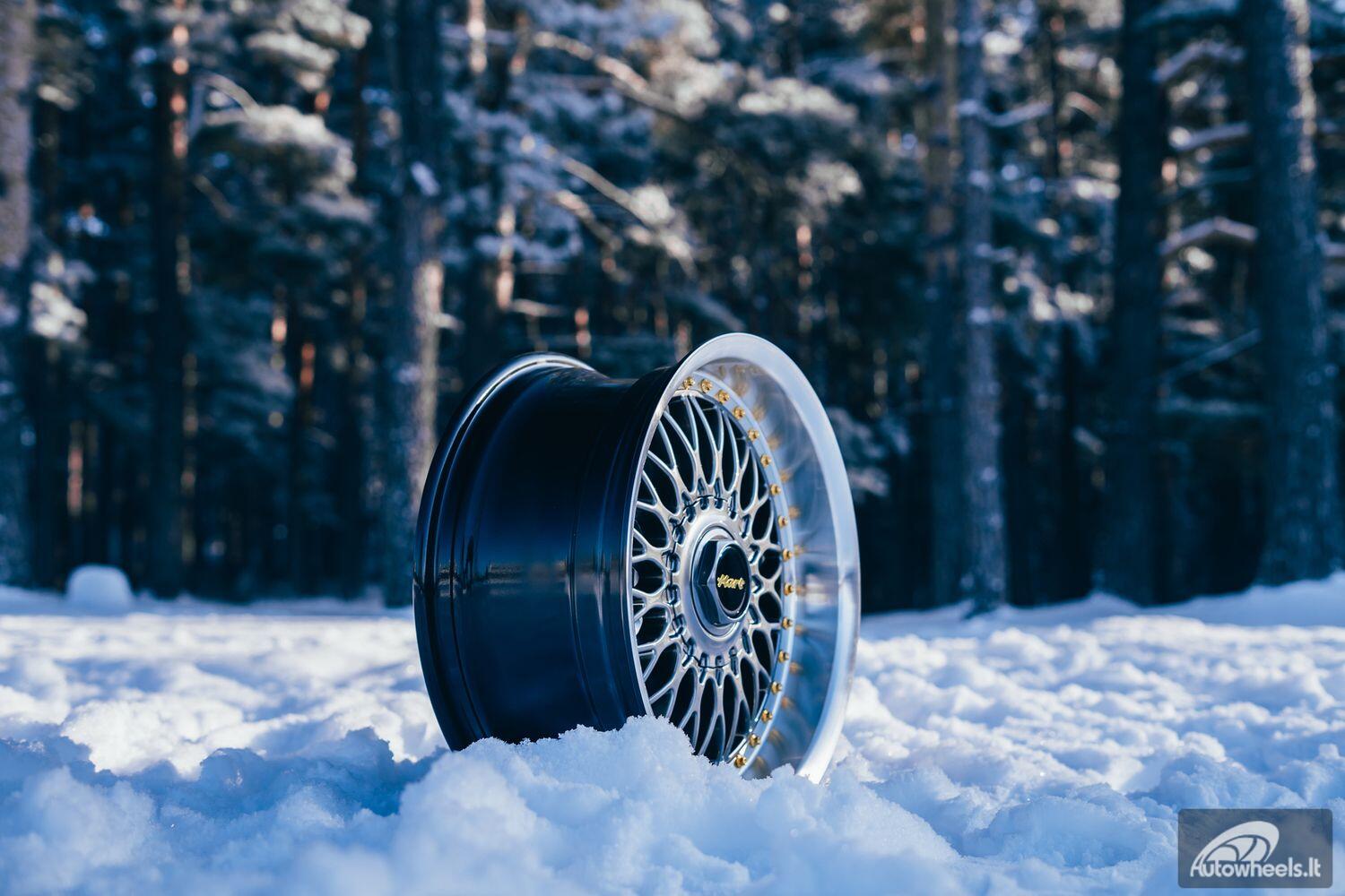 Ratlankis HART HR86 R17X8J 4X100/4X108 ET20 CB:73.1mm Hyper Black face and Diamond cut lip Gold Rivets