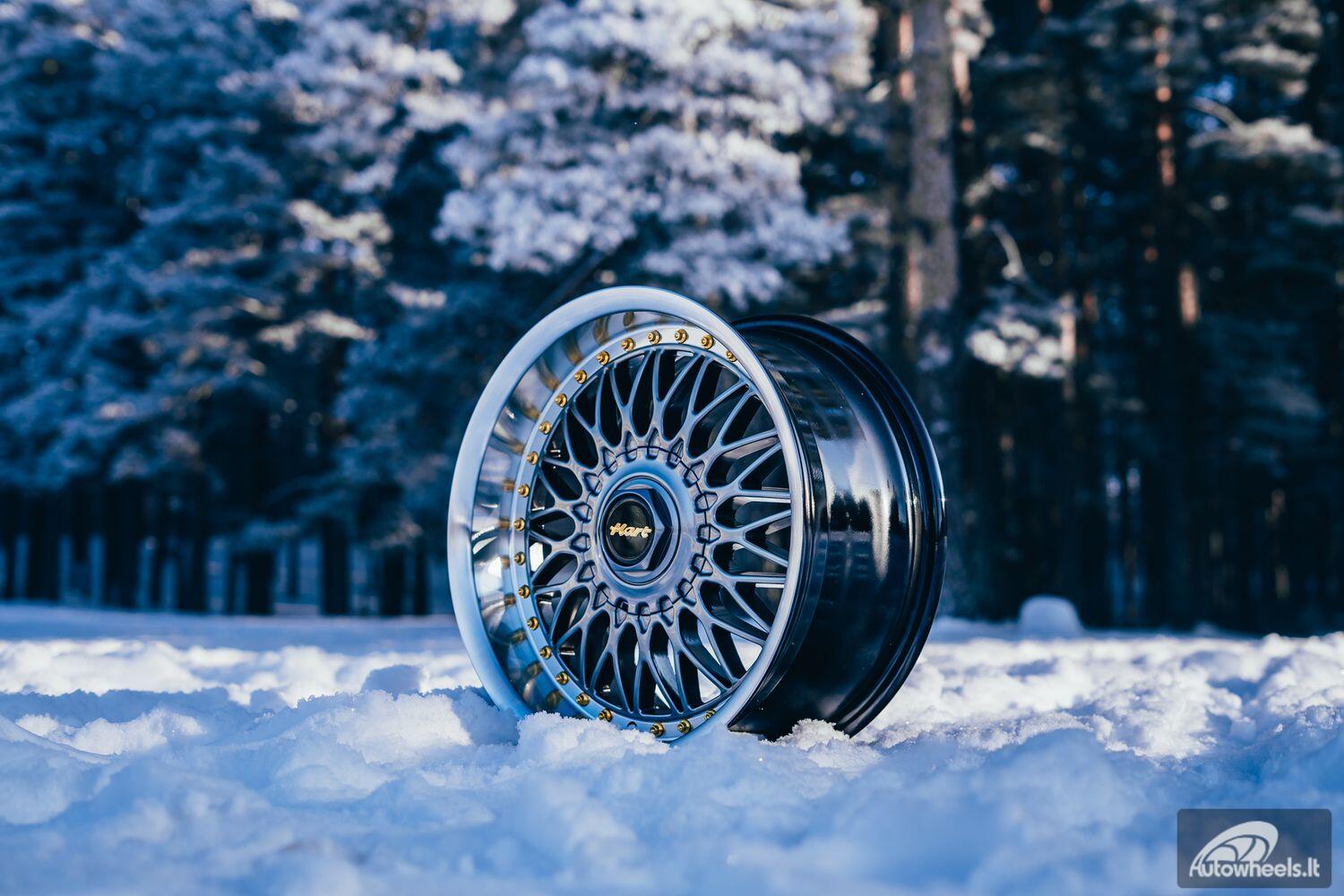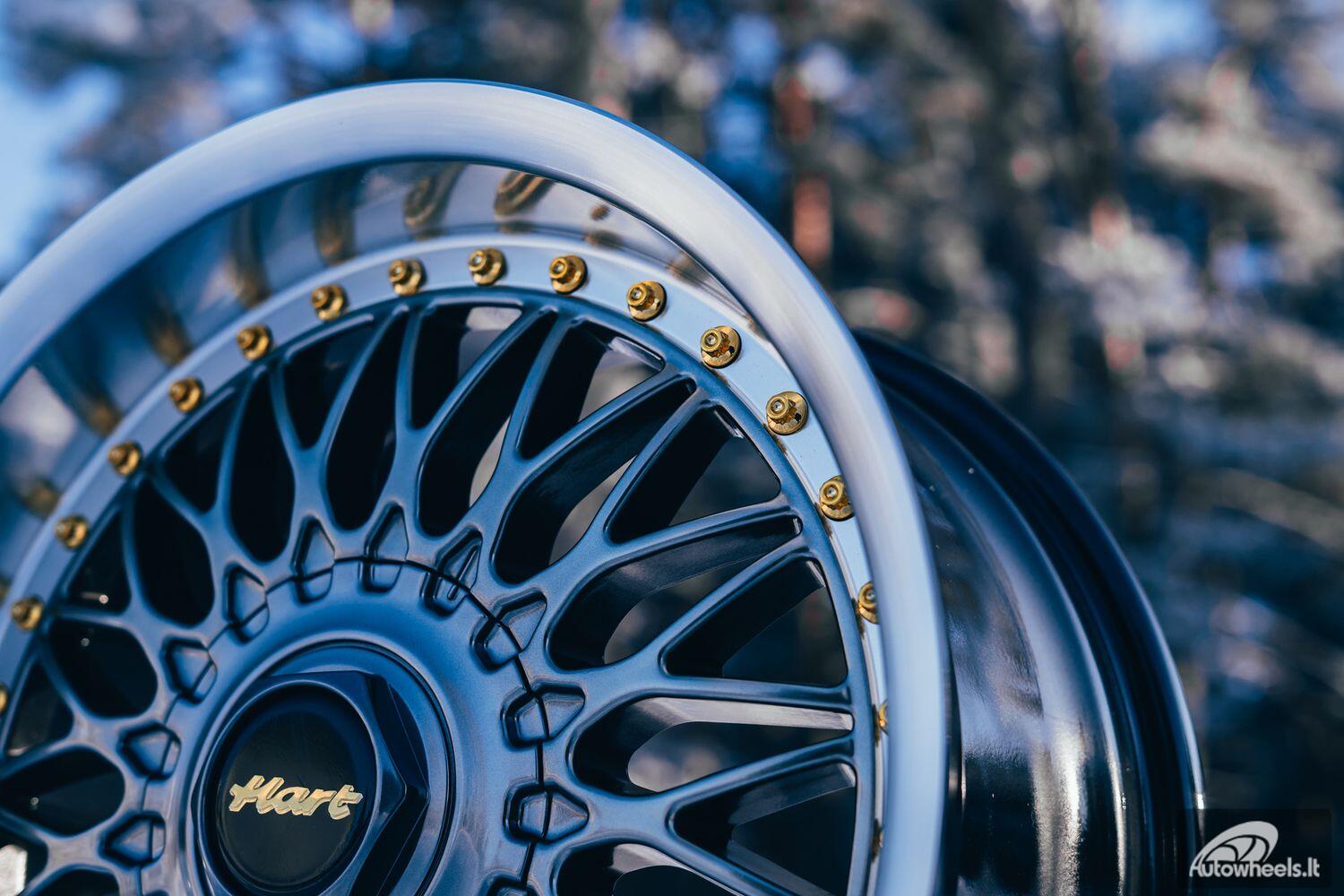Ratlankis HART HR86 R17X8J 4X100/4X108 ET20 CB:73.1mm Hyper Black face and Diamond cut lip Gold Rivets
