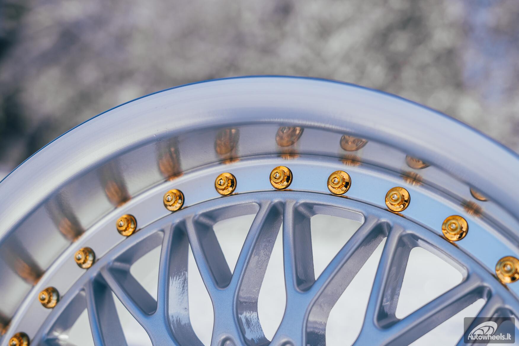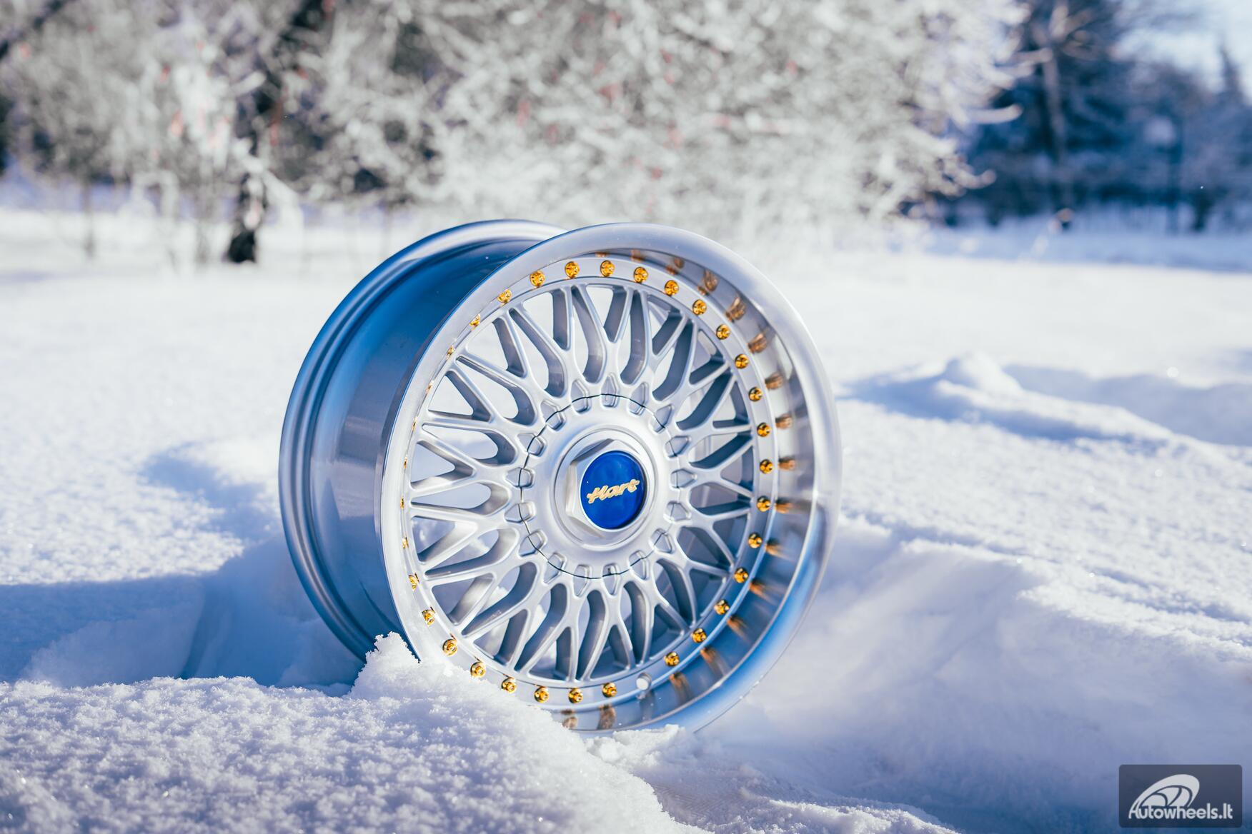 Ratlankis HART HR86 R17X8J 4X100/4X108 ET20 CB:73.1mm Silver face and Diamond cut lip Gold Rivets