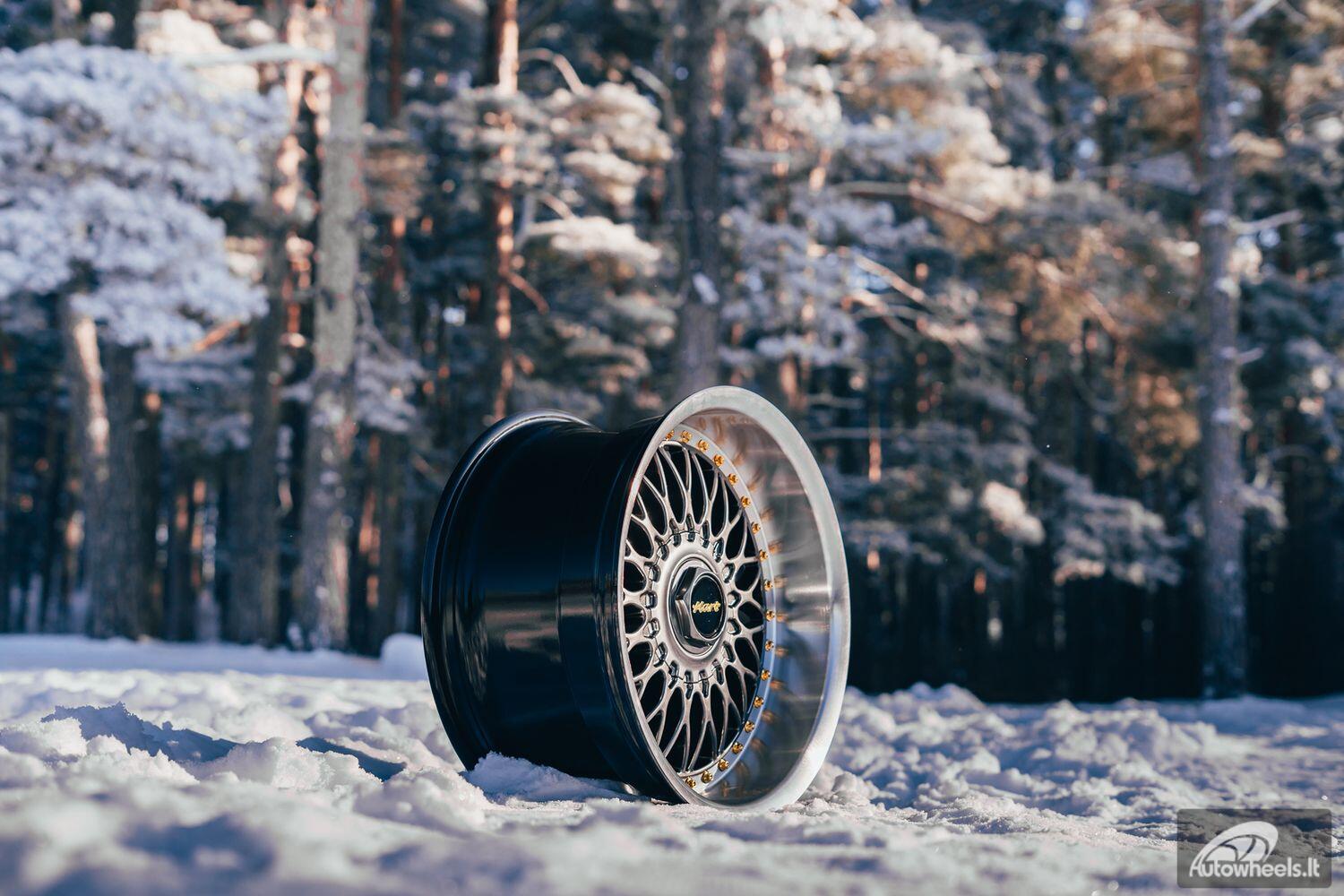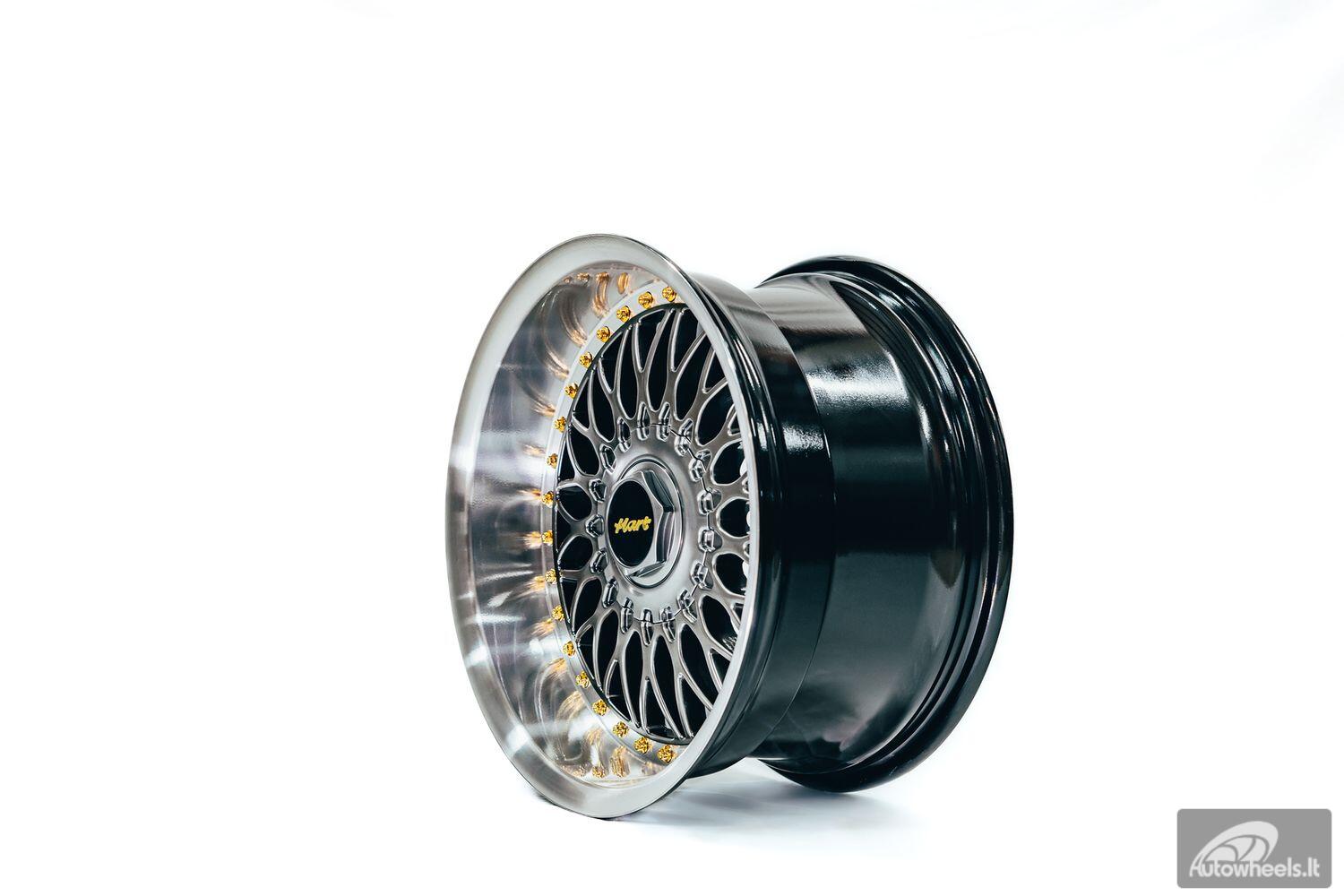 Ratlankis HART HR86 R17X9J 4X100/4X108 ET22 CB:73.1mm Hyper Black face and Diamond cut lip Gold Rivets