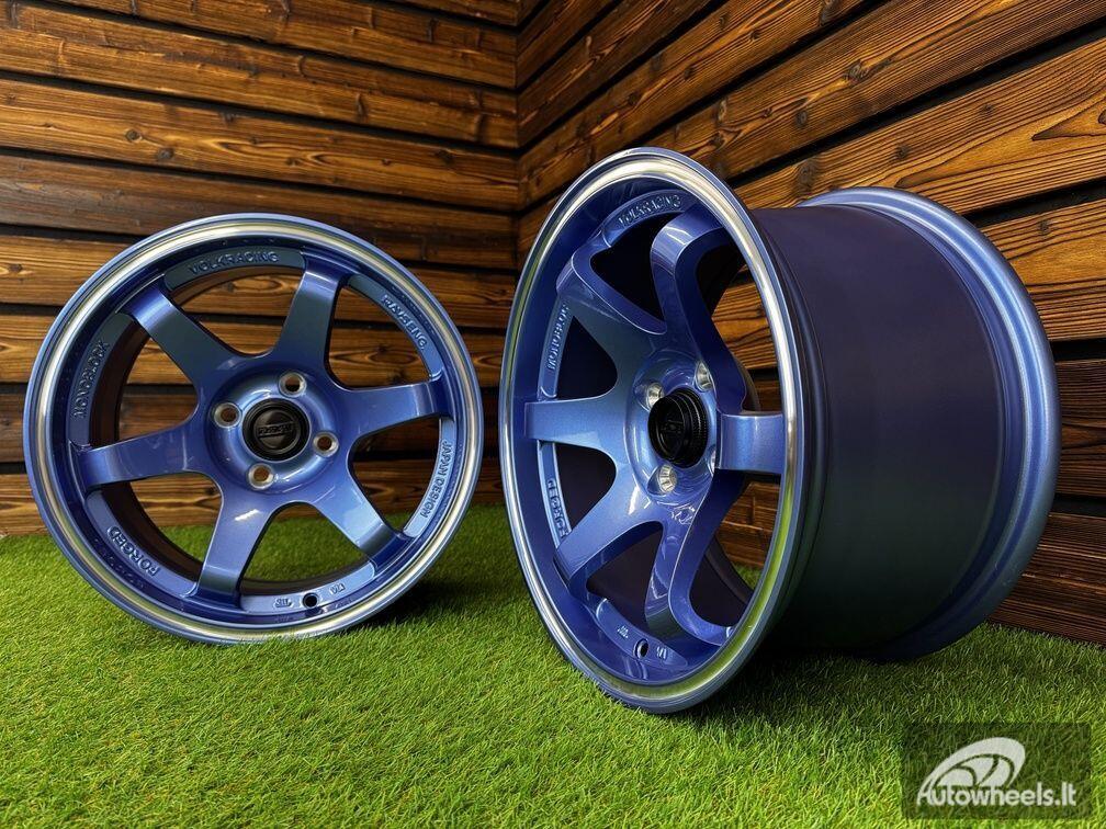 Ratlankis Volk TE37 Style R15X8.25J 4X100 ET20 73.1 Blue with Diamond Cut Lip