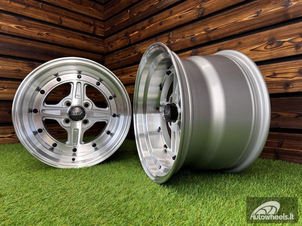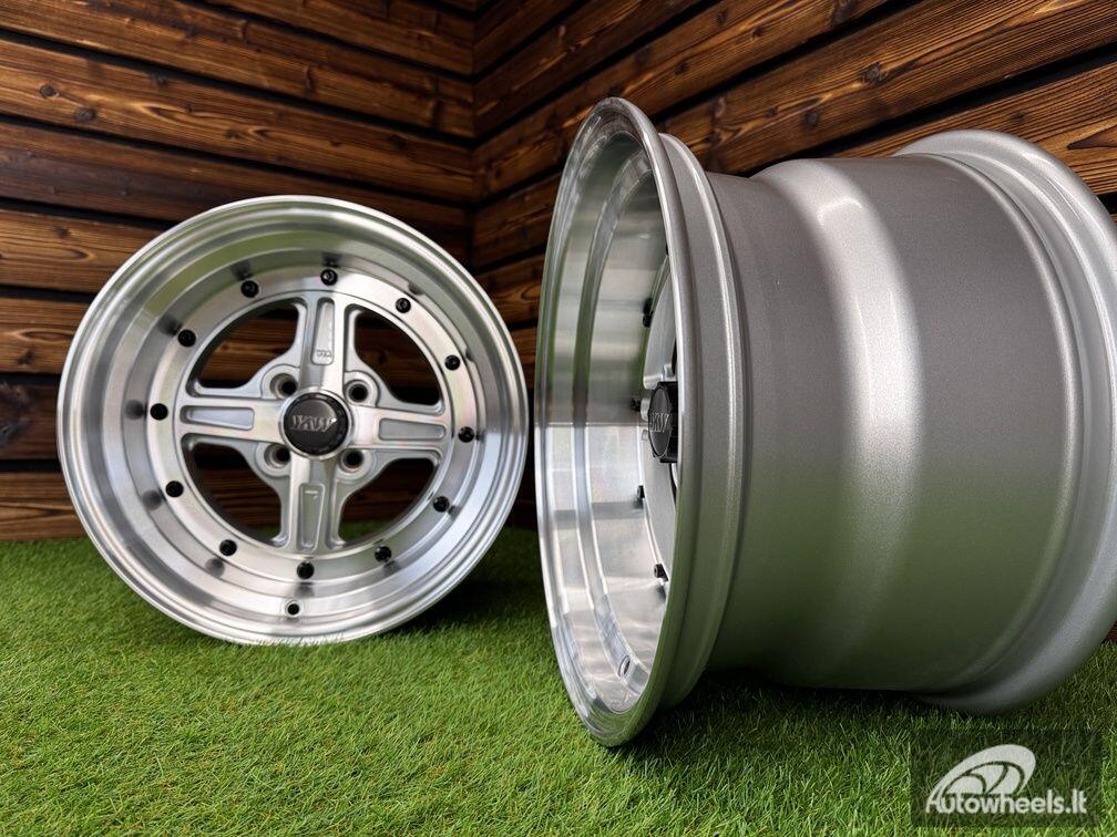 Ratlankis Work Equip 01 Style R15X9J 4X100 ET0 73.1 Silver with Diamond Cut and Black Rivets
