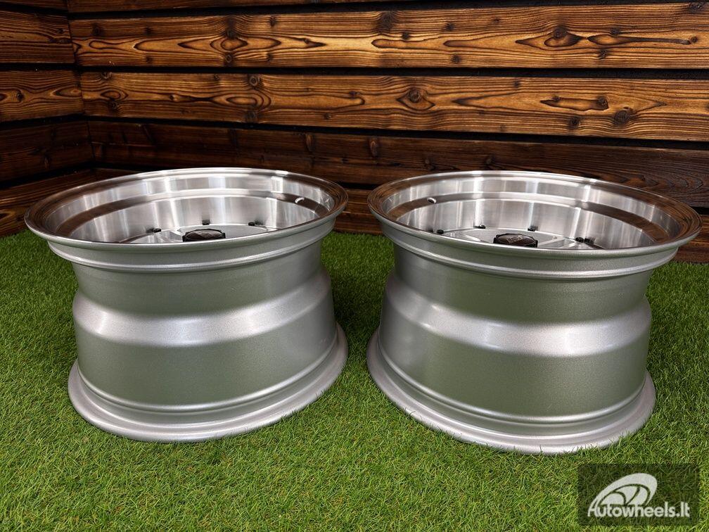 Ratlankis Work Equip 01 Style R15X9J 4X100 ET0 73.1 Grey with Diamond Cut Lip and Black Rivets